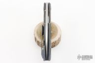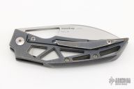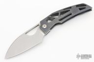This Prism is a Tashi Bharucha design made by Massdrop features a sheepsfoot tumbled blade with thumbhole. The handle has a anodized tumbled titanium frame with matching tip up clip. Has some light scuffs and scratches, good user condition.