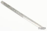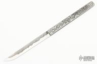 This Desk Knife by Shun Fujikawa features a San Mai Damascus blade with .125" blade stock and .430" blade depth, full tang construction. Comes with original box. Excellent condition.