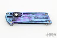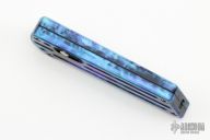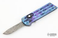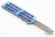 This Mini OTF Auto by Pro-Tech has a Damascus drop point style blade. The handle has an anodized aluminum frame. This knife is marked prototype. Excellent Condition.