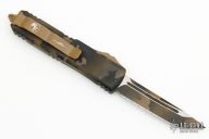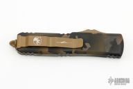 This UTX-85 by Microtech features a fully serrated tanto blade with Coyote Camo coating. The handle has a Coyote Camo coated aluminum frame with coyote hardware and tip down clip. Comes with original box and papers. Dated 09/2022 and s/n 006. Excellent condition.