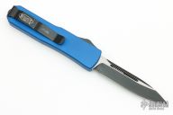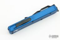 This UTX-85 OTF automatic features a S/E black blade with a standard edge, and a blue handle. Black stainless steel clip. Serial number 01487 Dated 08/2010. Comes with original box and papers. Excellent condition.