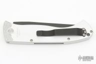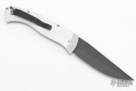 This side opening Brend design automatic by Pro-Tech features a black blade with false top edge. Aluminum handle with black stainless steel clip, tip up carry. Mosaic push button. Strong coil spring opening, perfect lock up and blade seating. Comes with original box and papers. First production run 2009 #17. Excellent condition.