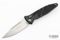 This Socom Elite Auto has a stonewash finished clip point blade with a standard edge. Black aluminum handle with non-slip inserts. Stainless steel clip, tip down carry. Glass breaker. Dated 12/2022 and s/n 8048. New condition. Comes with original box and papers.