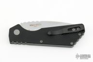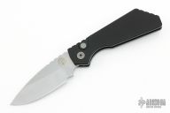 This Pro-Strider PT by Pro-Tech and Strider Knives features a stonewashed drop point blade with notched thumbrest. The handle has a textured black aluminum frame with black hardware and black stainless steel tip up clip.  Includes the original box and papers.  New from maker!