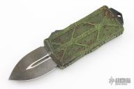 This Microtech Exocet features a stonewash/distressed finish spear point blade. The handle has aluminum frame and a black clip that doubles as a money clip dated 10/2021 s/n 206. Excellent Condition.