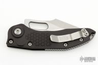 This Stitch Auto by Microtech Knives features a stonewash finished blade and false top edge, notched thumb and finger rests. The handle has a black anodized and milled aluminum handle with a bead blasted titanium backspacer and a bead blasted stainless steel clip, tip up carry, lanyard hole at the butt. Comes with original box and papers. S/N 10439 and dated 05/2022. Excellent Condition.