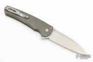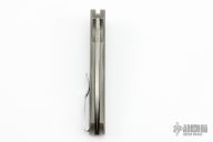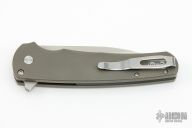 This Malibu by Pro-Tech features a stonewash blade with flipper. The handle has a milled and anodized titanium frame with gold lip pearl inlaid push button, black G-10 backspacer and a stainless steel tip up clip. Comes with a Pro-Tech box and papers. Excellent condition.