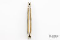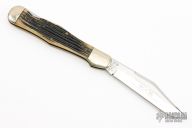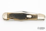 This Lockback by Schatt & Morgan features a mirror finished blade with nail nick. The handle has nickel silver bolsters, winterbottom bone covers, brass liners and stainless steel spring. Has some light scratches, otherwise excellent condition.