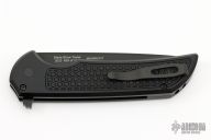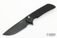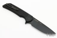 This Mordax by Pro-Tech is a Ferrum Forge design and features a black drop point blade. The handle has milled a black aluminum frame with black tip up stainless steel clip. Mosaic pin push button. Excellent condition. Comes with original box and papers.