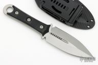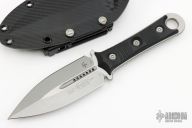 This SBD by Microtech Knives and Borka Blades features a stonewash finished double-edged blade with .188" blade stock and 1.556" blade depth, full tang construction with black G-10 scales. Comes with the original kydex sheath, original box and papers. Excellent condition. Dated 08/2021 and S/N 1231