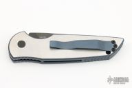 This TR-3 Custom Titanium by Pro-Tech features a DLC spear point blade. The handle has a two-tone satin/anodize finish 6al4v Ti frame with grooves and tip up clip. Black lip MOP button inlay. Comes with original box and papers. New condition.