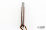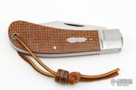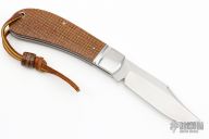 This slipjoint from Pepe Jalomo features a hand rub satin finished blade with nail nick. The handle has stainless steel fluted bolsters, thunderstorm Kevlar micarta covers with a stainless steel escutcheon, pins, and liners, stainless steel spring. Spring is flush in the closed, half stop, and open positions. Has a few scratches, otherwise excellent condition.