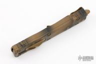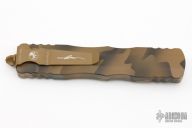 This Dirac Delta OTF automatic by Microtech features a D/E camo finished blade with a standard edges. The handle has a camo finish aluminum with stainless steel tip down clip and matching hardware. Serial number 096 and dated 02/2022. Comes with original box and papers. Excellent Condition.