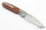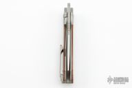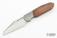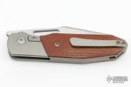 This GOM by Renegade Provisions Company features a satin finished blade with thumbhole, notched thumbrest and flipper. The handle has titanium bolsters with integral liners, canvas micarta scales, titanium backspacer with lanyard pin, tip up titanium clip.  Includes original box. Excellent Condition.