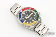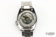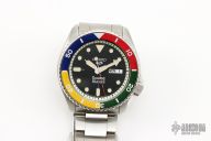 This colorful, special-edition Seiko 5 mechanical watch was designed in collaboration with American lifestyle clothing and accessories brand Rowing Blazers. Its bezel is decorated with the colors of Rowing Blazers' own livery in four, quarter-hour increments. Its special case back is emblazoned with one of Rowing Blazers' "house codes," a contemplative skeleton, as a memento mori: a reminder that time flies, with the words TEMPVS FVGIT. Co-designed by Rowing Blazers founder Jack Carlson and vintage watch expert Eric Wind, in collaboration with Seiko.