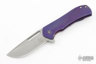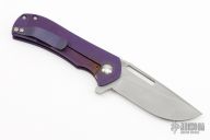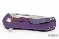 This Recon Flipper by Doc Shiffer features a bead blast finished blade with thumbhole, flipper and fileworked thumbrest. The handle is tumble and anodize finished titanium with matching tip up clip. Rides on bearings, nice detent, lockup and blade seating. Comes with a COA dated 3/23. New from maker.