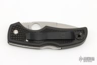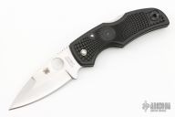 This Native by Spyderco has a plain edged satin finished blade and black FRN handle with black stainless clip. Includes original box. Excellent condition.