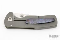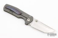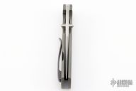 This Egret by Jared Price features a hand rub satin finished blade with false top edge and dual thumbstuds. The handle has a bead blasted titanium frame, zircuti backspacer and tip up clip with hidden screws. Nice detent, lockup and blade seating. Comes with a zippered case. It has some light scuffs/scratches, otherwise excellent condition.