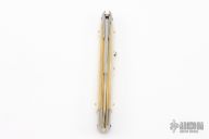This 11" Swing Guard Auto by Frank Beltrame features a bayonet ground blade with false top edge. The handle has stainless steel bolsters, front and rear, mother of pearl scales, brass liners, stainless spring. Excellent condition.