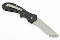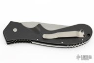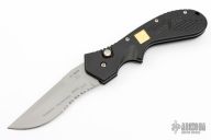 This Worden/Crawford designed WorTac side opening automatic features drop point recurve partially serrated blade with false top edge. The handle is comprised of black aluminium scales and plain aluminum backspacer. Has some marks on the clip, otherwise excellent condition. Comes with original box.
