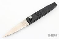 This Spike automatic by Benchmade Knives features a satin finished partially serrated blade and black anodized aluminum frame. Has some light scuffs, otherwise excellent condition.