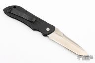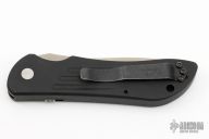 The AutoStryker features a satin finished tanto style blade with partial serrations and a notched thumbrest.  The handle features a black aluminum frame with a stainless steel tip up pocket clip. Has a couple light scuffs, otherwise excellent condition.