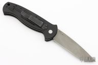 This 9050 AFO auto by Benchmade has a bead blasted blade. Black anodized aluminium handle. Integrated safety system. Black stainless steel clip - 2 way reversible, and lanyard hole. Has scuffs and scratches, good user condition.