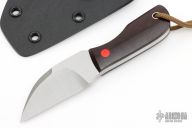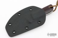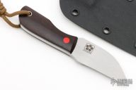 This Fixed Blade by Josh Mason features a satin finish blade, .177" blade stock, 1.073" blade depth with full tang construction. The handle has micarta scales, and orange G10 pins. Comes with a Kydex sheath. New from maker.