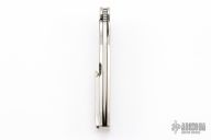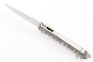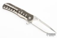 This M39 flipper by Andre Van Heerden features a hand-rubbed satin finish blade with mirror polished flats, notched thumbrest and flipper. The handle has titanium scales with carbon fiber inlays, satin finished stainless steel backspacer and a milled titanium tip up clip. Includes IKBS (Ikoma-Korth Bearing System) for fast and smooth flipper opening that requires no wrist action. Excellent work. Comes with nylon velcro case. Has a few very light scratches, otherwise excellent condition.