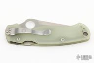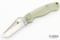 This G81GM4BKP2 Paramilitary 2 by Spyderco features a satin finished tanto blade with thumb hole, notched thumb ramp and choil. The handle has a textured jade G10 scales over a stainless steel subframe and lockbar. 4 way adjustable pocket clip and lanyard tube in pommel. Includes original box and paperwork. Excellent condition.