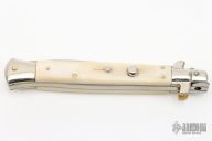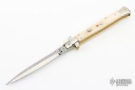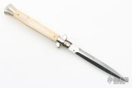 This Picklock auto by Latama features a dagger blade with a false top edge. Nickle silver guard and rear bolster and Camel Bone scales. Nice function, strong firing and lock up. Excellent condition.