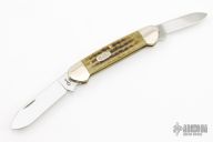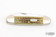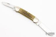 This Canoe 2-Blade Folder by Case Knives has polished stainless steel blades with nail nick(s). The handle has nickel silver bolsters and cap, jigged bone covers, nickel silver liners and stainless springs. Comes with original box and papers. Has a couple light scratches, otherwise excellent condition.