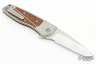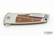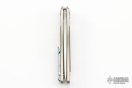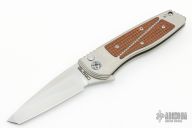 This Loki Flipper by Rod Olson features a satin finished tanto blade with flipper. The handle is comprised of a milled titanium frame complemented by four thunderstorm kevlar inlays and a titanium tip up clip. Comes with a zippered case. Has light scratches, otherwise excellent condition.