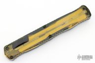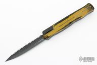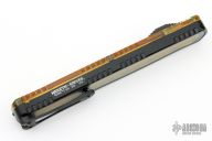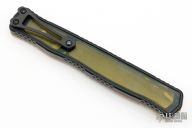 This Cleric II OTF by Heretic Knives features a black double edged Magnacut blade with one fully serrated edge. The handle has a black aluminum frame with Ultem cover, DLC titanium tip down clip. Comes with original box and lube. New from maker.
