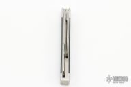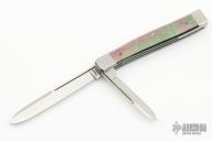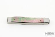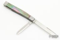 This Serpentine Doctor's knife by Richard Rogers features hand rub satin finished blades with long pull nail nicks. The handle has integral stainless bolsters/liners/cap, black lip pearl covers, stainless steel springs. Frame edges are beveled. Comes with original box and papers dated January 2005. Excellent condition.