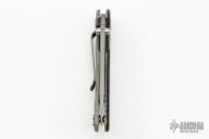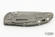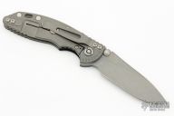 This 3" XM-18 Slicer by Rick Hinderer Knives features a working finished drop point blade with swedge, dual thumb studs and notched thumb rest. The handle is comprised of a textured black G10 scale over titanium liner on the "A" side and a working finished titanium lockside and titanium barrel spacers with matching filler tab, pocket clip, lockbar stabilizer and pivot. Excellent condition.