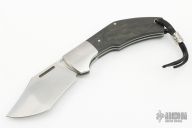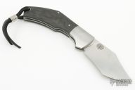 This Superbad Collab by Tashi Bharucha and Franck Souville features a Hand rub satin finished blade with nail nick. The handle has satin finished stainless steel dovetailed bolsters, marble carbon fiber covers, stainless steel liners and spring. Nice strong spring, nice blade seating. Comes with original box. Has a couple light scratches, otherwise excellent condition.