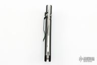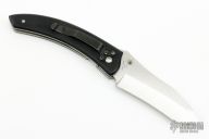 This Payara by Al Mar features a satin finished tanto recurve blade with dual thumbstuds and a notched thumbrest. The handle has black G-10 scales, stainless steel liners, and a tip down black stainless steel clip. Has light scratches otherwise the knife is in good condition.