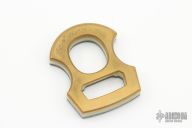 This Cypop bottle opener is crafted from brass, black canvas micarta and a green glow liner. Satin finished titanium hardware. Includes a Greg Stevens slip sheath. Excellent condition. Comes with original box and papers.