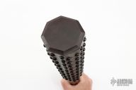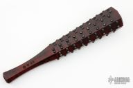 Ryan's love for creating historical pieces with his modern twists are evident in his Large Tetsubo war club.  Each of these 6 pound studded octagon smashers are made from 4" x 30" square blanks of Tennessee Hickory.  The 8 facets of the octagon have evenly spaced fire scaled black iron studs. Every Tetsubo is marked with "Destiny" in kanji characters,Ryan's makers mark, and his 2023 mark.  Each one is shaped using power carving techniques, then hand sanded and finished with a hand rubbed, home brewed, old school finish.  If needed, the finish can be easily maintained with a coat of black furniture wax periodically to restore the elegant depth.  These are another great addition to your RMJ war chest!