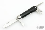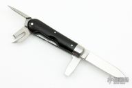 This Elsener Schwyz Soldier 1891 (Replica) by Victorinox is #0041/1884 in the fourth run. It has a drop point blade with nail nick, can opener, flat head awl/marlin spink. The handle has stainless steel bolsters, liners and springs, dark wood scales. Has some light scrathes, otherwise excellent condition.