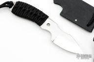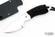 This neck knife by Citadel features a mirror polished blade with notched thumbrest, .114" blade stock and 1.092" blade depth, full tang construction with cord wrapped grip. Comes with a kydex neck sheath. Has some light scratches, otherwise excellent condition.