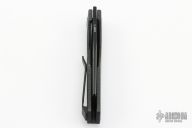 This Axon liner lock Folder by Vero Engineering features a black DLC coated blade with notched thumbrest and recess. The handle has a carbon fiber scales over black titanium liners with a matching backspacer and tip up pocket clip. Comes with zippered case and COA. Excellent condition.