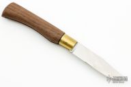 This Opinel Style folder by Old Bear by Antonini features a VG10 core San Mai Damascus blade with nail nick. The handle has a brass collar with wood grip. Comes with original box and papers. Excellent condition.