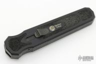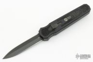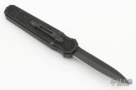This Harkins Triton OTF Auto has a black double-edged blade. The handle is black aluminum with non-slip inserts and black finished tip down clip. Has a few light scuffs, otherwise excellent condition.