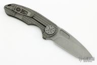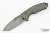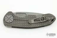 This F3 Medium by Curtiss Knives features a stonewashed Magnacut blade with notched thumbrest. The handle has a frag milled titanium frame over notched titanium backspacer, matching titanium tip up clip. Smooth and fast opening using a Caged Bearing System. Nice blade seating, detent and lock up. Includes a zippered case, COA, and original box.  Excellent Condition.
