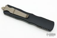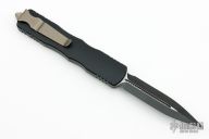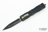 This Dirac Delta OTF automatic by Microtech features a D/E black blade with a standard edges. The handle has a black aluminum with stainless steel tip down clip and bronze hardware. Serial number 005 and dated 04/2019. Comes with original box and papers. Excellent Condition.