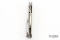 This MBK Slayback by Monterey Bay Knives is a Ray Laconico design, it features a satin finished ZDP-189 San Mai blade with notched flipper. The handle has a bead blasted titanium frame with stainless steel liner, tip up titanium clip. Comes with zippered case and a extra mokuti pocket clip. Excellent Condition.