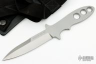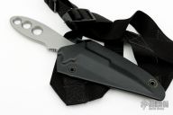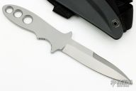 This Knife by Tom Maringer was a special order and is one of a kind. It features a bead blast finished blade with sharpened top edge, notched thumb and finger rests, full tang construction, .233" Blade Stock, .920" Blade Depth. Includes a kydex sheath with leg rig. Has a couple of very light sheath marks, otherwise excellent condition. Dated 1984 and #269.