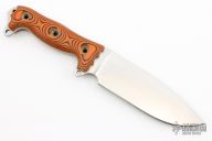 This Custom Shop Steel Heart from Busse Combat Knife Company features a satin finished blade, .216" blade stock and 1.882" blade depth, full tang construction. The handle black/orange G-10 scales with tube pins over full tang construction. Exposed tang pommel with lanyard hole. Excellent condition.